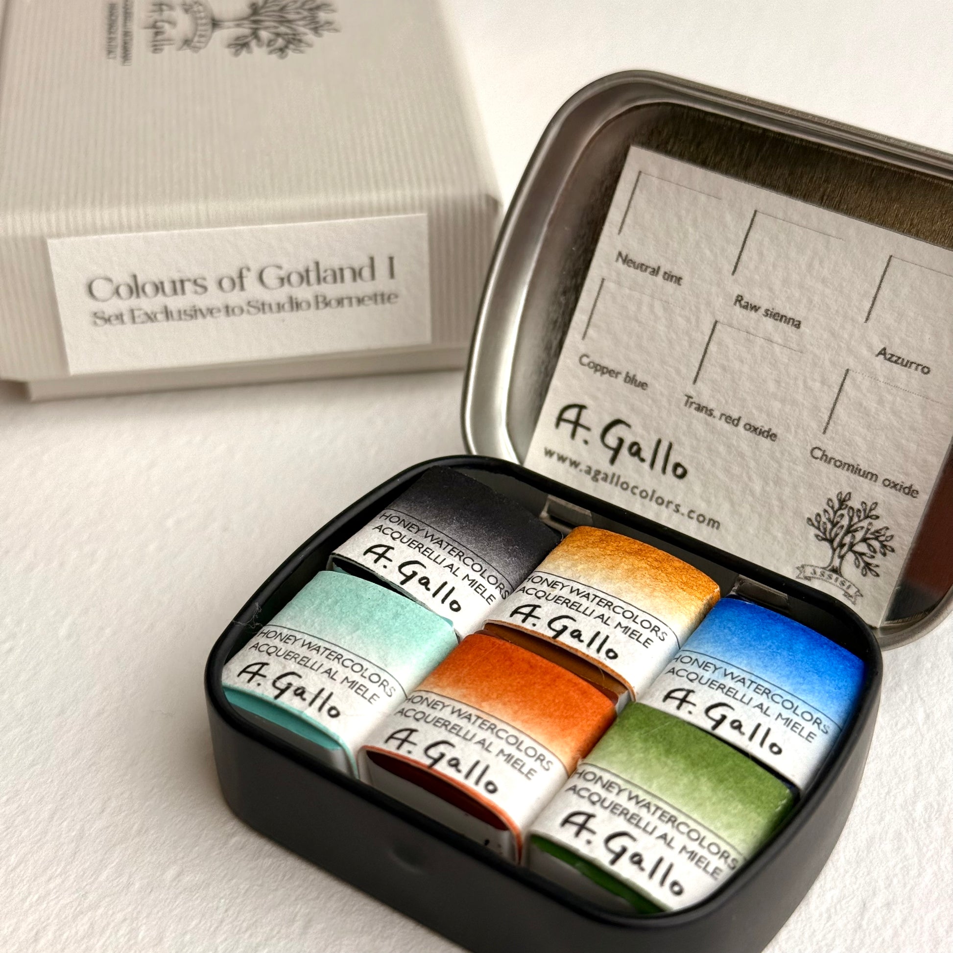 Colours of Gotland I är pleinairset exklusivt framtaget av A.Gallo för Bornette. Färgpaletten och dess blandningar är inspirerad av öns natur.
