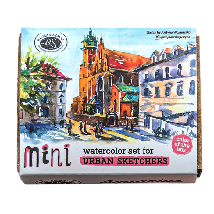 Ett mini set speciellt utformat för urban sketching och resedagböcker. Paletten innehåller 8 stycken halvkoppar* av väl valda Aquarius extra fina akvarellfärger av konstnärskvalitet.